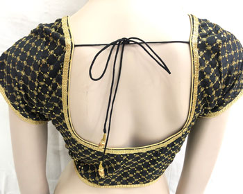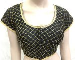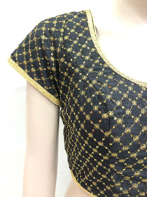 Half sleeves Padded Blouse with gold embellishments sequins and border detail. Material : Embroidery Colour : Black/Gold