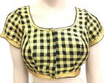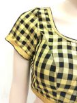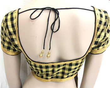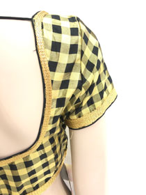 Half sleeves Padded Blouse with brocade checked patterns and border detail. Material : Brocade Colour : Black/Gold