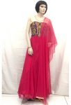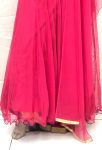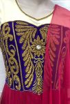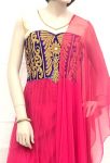 Long Salwar with stone worked velvet top body; comes with trousers, sleeves material and net shawl. Material : Net/ Velvet Colour : Magenta/ Purple/ Gold
