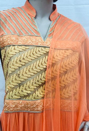 Long Salwar with Lace top body; comes with trouser, sleeves material and net shawl.