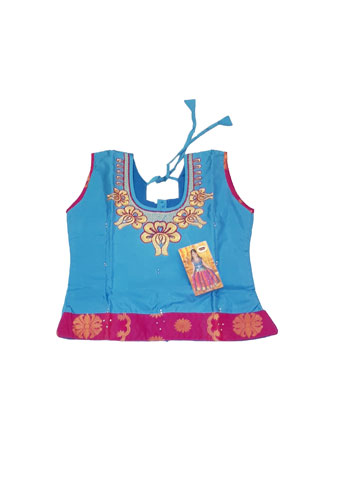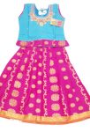 Pattu pavada blue/magenta with embroidery. Skirt in magenta with zari design with Lining Body and blue Pavada Top with embroidery along neck. Fits toddler size 18.