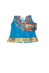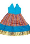 Pattu pavada blue/multicolour with embroidery. Skirt in multicolour checks with embroidery with Lining Body and blue Pavada Top with embroidery. Fits toddler size 18.