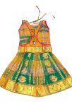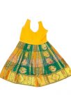 Checked Yellow/ Green skirt which comes with Lining body and back hook closure. Pavada Top in vest pattern decorated with stones on front.