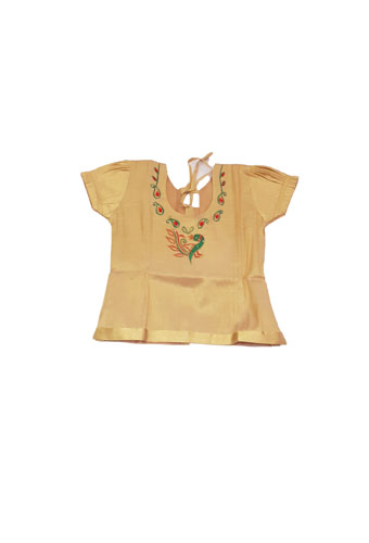 Pattu pavada gold/cream with embroidery. Skirt in cream with Lining Body and gold Pavada Top with peacock embroidery. Fits size 26.