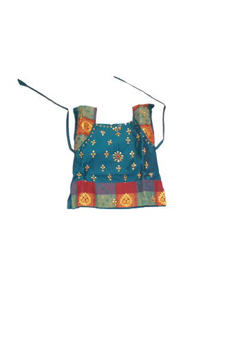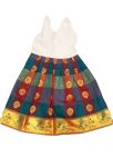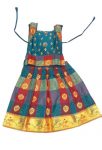 Pattu pavada green/red checks. Skirt in red/green check with Lining body and green Pavada Top decorated with gold pearls sown on. Fits toddler size 16.