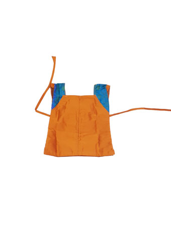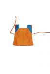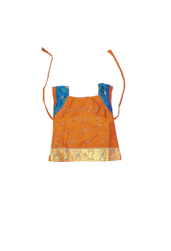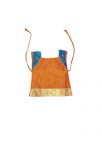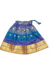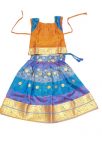 Pattu pavada mustard/blue. Skirt in blue with double border and mustard Pavada Top decorated with gold pearls sown on. Fits toddler size 16.
