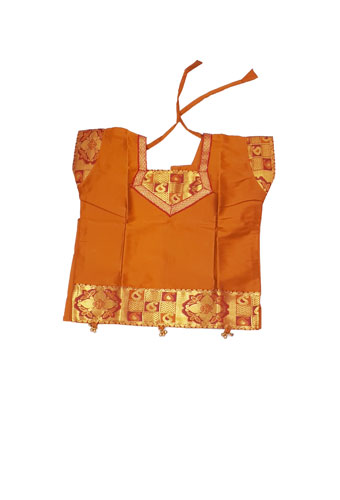 Pattu pavada mustard/multicolour. Skirt in multicolour checks and Lining Body and orange Pavada Top with border decoration. Fits toddler size 22.