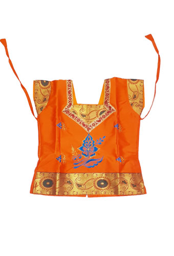 Pattu pavada orange/multicolour check. Skirt in multicolour check with Lining Body and orange Pavada Top with embroidery. Fits size 24.