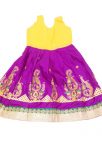 Pattu pavada yellow/purple. Skirt in purple with embroidery with Lining Body and yellow Pavada Top decorated with stones. Fits toddler size 16.