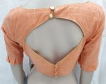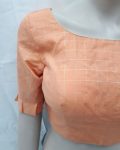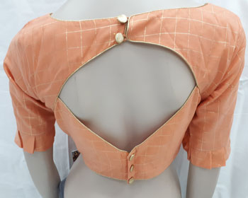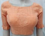 Elbow length sleeves Padded Blouse with checked gold pattern and frill detail on sleeves. Material : Polyester Colour : Peach/Gold