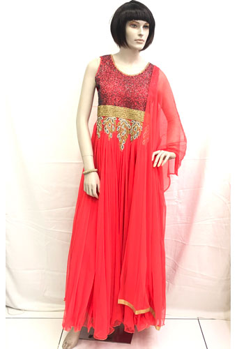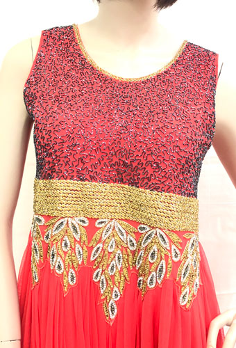Long Gown with sequins embroidery on top body.